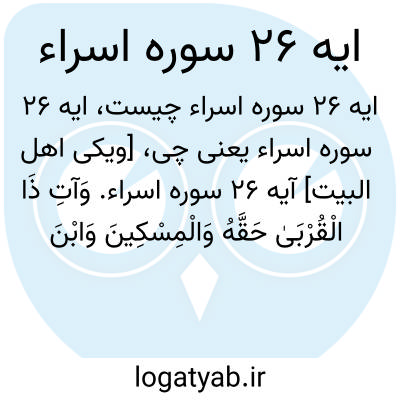 [ویکی اهل البیت] آیه 26 سوره اسراء. وَآتِ ذَا الْقُرْبَیٰ حَقَّهُ وَالْمِسْکِینَ وَابْنَ السَّبِیلِ وَلَا تُبَذِّرْ تَبْذِیرًا