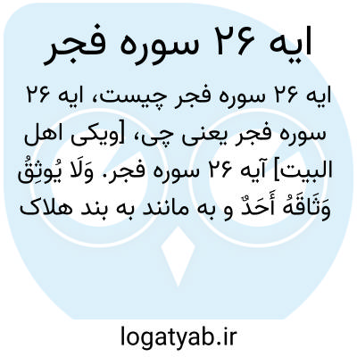 [ویکی اهل البیت] آیه 26 سوره فجر. وَلَا یُوثِقُ وَثَاقَهُ أَحَدٌ