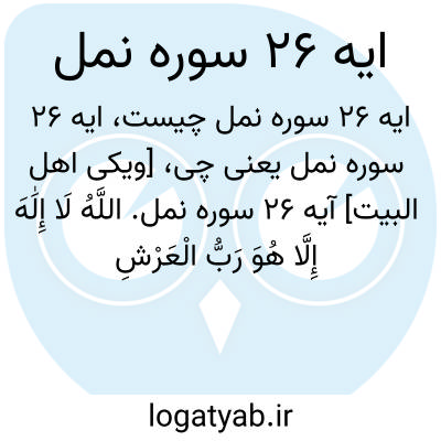 [ویکی اهل البیت] آیه 26 سوره نمل. اللَّهُ لَا إِلَٰهَ إِلَّا هُوَ رَبُّ الْعَرْشِ الْعَظِیمِ ۩