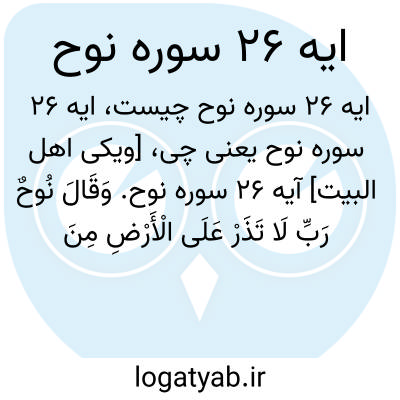 [ویکی اهل البیت] آیه 26 سوره نوح. وَقَالَ نُوحٌ رَبِّ لَا تَذَرْ عَلَی الْأَرْضِ مِنَ الْکَافِرِینَ دَیَّارًا