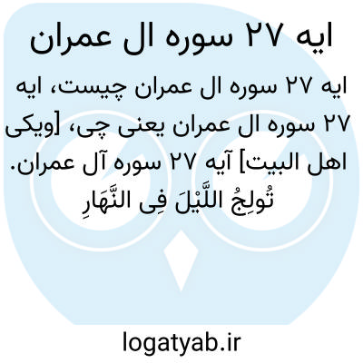 [ویکی اهل البیت] آیه 27 سوره آل عمران. تُولِجُ اللَّیْلَ فِی النَّهَارِ وَتُولِجُ النَّهَارَ فِی اللَّیْلِ ۖ وَتُخْرِجُ الْحَیَّ مِنَ الْمَیِّتِ وَتُخْرِجُ الْمَیِّتَ مِنَ الْحَیِّ ۖ وَتَرْزُقُ مَنْ تَشَاءُ بِغَیْرِ حِسَابٍ