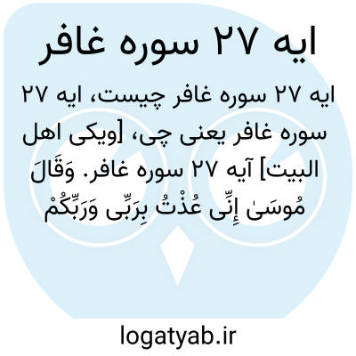 [ویکی اهل البیت] آیه 27 سوره غافر. وَقَالَ مُوسَیٰ إِنِّی عُذْتُ بِرَبِّی وَرَبِّکُمْ مِنْ کُلِّ مُتَکَبِّرٍ لَا یُؤْمِنُ بِیَوْمِ الْحِسَابِ