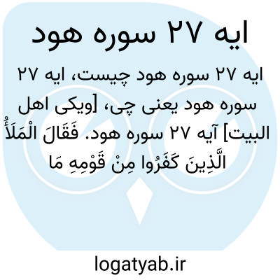 [ویکی اهل البیت] آیه 27 سوره هود. فَقَالَ الْمَلَأُ الَّذِینَ کَفَرُوا مِنْ قَوْمِهِ مَا نَرَاکَ إِلَّا بَشَرًا مِثْلَنَا وَمَا نَرَاکَ اتَّبَعَکَ إِلَّا الَّذِینَ هُمْ أَرَاذِلُنَا بَادِیَ الرَّأْیِ وَمَا نَرَیٰ لَکُمْ عَلَیْنَا مِنْ فَضْلٍ بَلْ نَظُنُّکُمْ کَاذِبِینَ