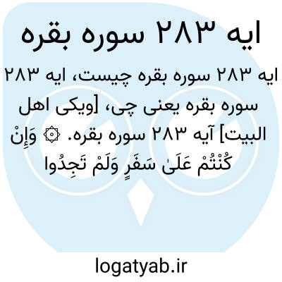 [ویکی اهل البیت] آیه 283 سوره بقره. ۞ وَإِنْ کُنْتُمْ عَلَیٰ سَفَرٍ وَلَمْ تَجِدُوا کَاتِبًا فَرِهَانٌ مَقْبُوضَةٌ ۖ فَإِنْ أَمِنَ بَعْضُکُمْ بَعْضًا فَلْیُؤَدِّ الَّذِی اؤْتُمِنَ أَمَانَتَهُ وَلْیَتَّقِ اللَّهَ رَبَّهُ ۗ وَلَا تَکْتُمُوا الشَّهَادَةَ ۚ وَمَنْ یَکْتُمْهَا فَإِنَّهُ آثِمٌ قَلْبُهُ ۗ وَاللَّهُ بِمَا تَعْمَلُونَ عَلِیمٌ