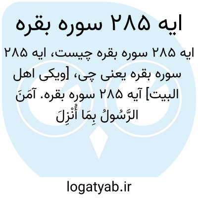 [ویکی اهل البیت] آیه 285 سوره بقره. آمَنَ الرَّسُولُ بِمَا أُنْزِلَ إِلَیْهِ مِنْ رَبِّهِ وَالْمُؤْمِنُونَ ۚ کُلٌّ آمَنَ بِاللَّهِ وَمَلَائِکَتِهِ وَکُتُبِهِ وَرُسُلِهِ لَا نُفَرِّقُ بَیْنَ أَحَدٍ مِنْ رُسُلِهِ ۚ وَقَالُوا سَمِعْنَا وَأَطَعْنَا ۖ غُفْرَانَکَ رَبَّنَا وَإِلَیْکَ الْمَصِیرُ