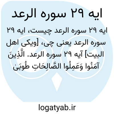 [ویکی اهل البیت] آیه 29 سوره الرعد. الَّذِینَ آمَنُوا وَعَمِلُوا الصَّالِحَاتِ طُوبَیٰ لَهُمْ وَحُسْنُ مَآبٍ