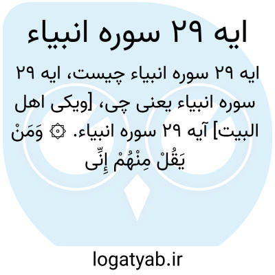 [ویکی اهل البیت] آیه 29 سوره انبیاء. ۞ وَمَنْ یَقُلْ مِنْهُمْ إِنِّی إِلَٰهٌ مِنْ دُونِهِ فَذَٰلِکَ نَجْزِیهِ جَهَنَّمَ ۚ کَذَٰلِکَ نَجْزِی الظَّالِمِینَ