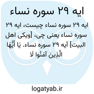 [ویکی اهل البیت] آیه 29 سوره نساء. یَا أَیُّهَا الَّذِینَ آمَنُوا لَا تَأْکُلُوا أَمْوَالَکُمْ بَیْنَکُمْ بِالْبَاطِلِ إِلَّا أَنْ تَکُونَ تِجَارَةً عَنْ تَرَاضٍ مِنْکُمْ ۚ وَلَا تَقْتُلُوا أَنْفُسَکُمْ ۚ إِنَّ اللَّهَ کَانَ بِکُمْ رَحِیمًا