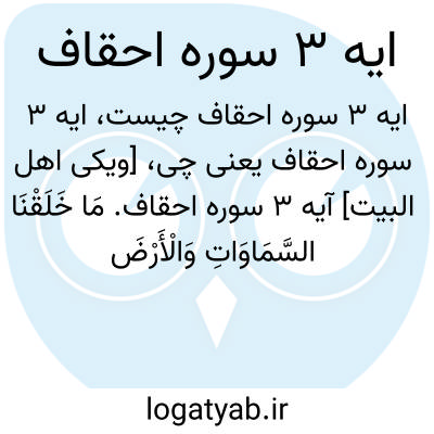 [ویکی اهل البیت] آیه 3 سوره احقاف. مَا خَلَقْنَا السَّمَاوَاتِ وَالْأَرْضَ وَمَا بَیْنَهُمَا إِلَّا بِالْحَقِّ وَأَجَلٍ مُسَمًّی ۚ وَالَّذِینَ کَفَرُوا عَمَّا أُنْذِرُوا مُعْرِضُونَ