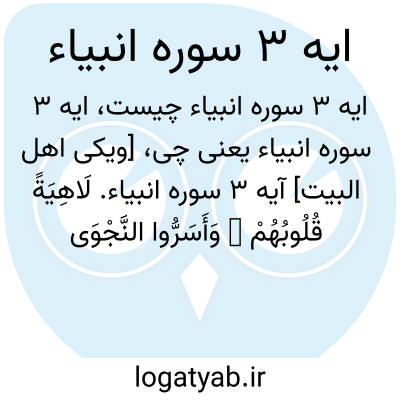 [ویکی اهل البیت] آیه 3 سوره انبیاء. لَاهِیَةً قُلُوبُهُمْ ۗ وَأَسَرُّوا النَّجْوَی الَّذِینَ ظَلَمُوا هَلْ هَٰذَا إِلَّا بَشَرٌ مِثْلُکُمْ ۖ أَفَتَأْتُونَ السِّحْرَ وَأَنْتُمْ تُبْصِرُونَ