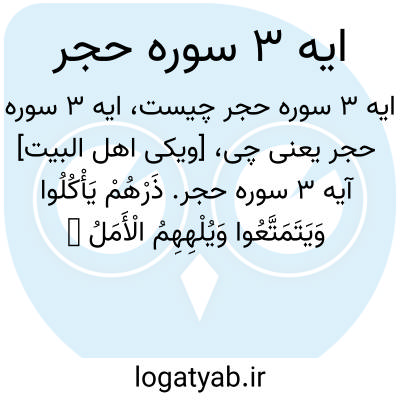 [ویکی اهل البیت] آیه 3 سوره حجر. ذَرْهُمْ یَأْکُلُوا وَیَتَمَتَّعُوا وَیُلْهِهِمُ الْأَمَلُ ۖ فَسَوْفَ یَعْلَمُونَ