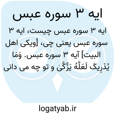 [ویکی اهل البیت] آیه 3 سوره عبس. وَمَا یُدْرِیکَ لَعَلَّهُ یَزَّکَّیٰ