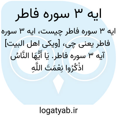[ویکی اهل البیت] آیه 3 سوره فاطر. یَا أَیُّهَا النَّاسُ اذْکُرُوا نِعْمَتَ اللَّهِ عَلَیْکُمْ ۚ هَلْ مِنْ خَالِقٍ غَیْرُ اللَّهِ یَرْزُقُکُمْ مِنَ السَّمَاءِ وَالْأَرْضِ ۚ لَا إِلَٰهَ إِلَّا هُوَ ۖ فَأَنَّیٰ تُؤْفَکُونَ