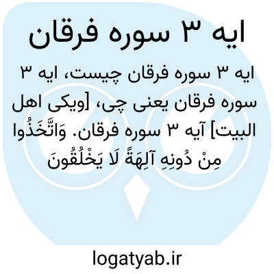 [ویکی اهل البیت] آیه 3 سوره فرقان. وَاتَّخَذُوا مِنْ دُونِهِ آلِهَةً لَا یَخْلُقُونَ شَیْئًا وَهُمْ یُخْلَقُونَ وَلَا یَمْلِکُونَ لِأَنْفُسِهِمْ ضَرًّا وَلَا نَفْعًا وَلَا یَمْلِکُونَ مَوْتًا وَلَا حَیَاةً وَلَا نُشُورًا