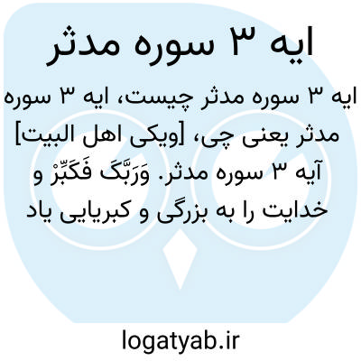 دانشنامه اسلامی [ویکی اهل البیت] آیه 3 سوره مدثر. وَرَبَّکَ فَکَبِّرْو خدایت را به بزرگی و کبریایی یاد کن.و پروردگار خود را بزرگ دار.و پروردگارت را تکبیر گوی.و پروردگارت را بزرگ بشمار،And thy Lord do thou magnify!
