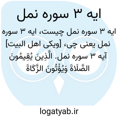 [ویکی اهل البیت] آیه 3 سوره نمل. الَّذِینَ یُقِیمُونَ الصَّلَاةَ وَیُؤْتُونَ الزَّکَاةَ وَهُمْ بِالْآخِرَةِ هُمْ یُوقِنُونَ