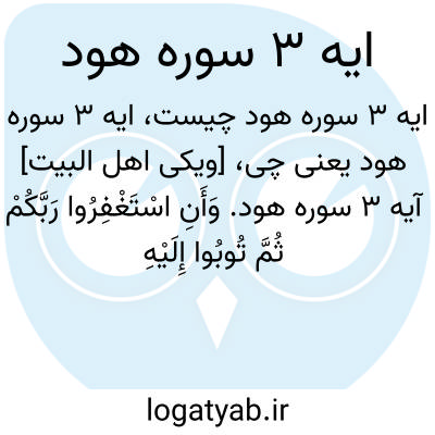 [ویکی اهل البیت] آیه 3 سوره هود. وَأَنِ اسْتَغْفِرُوا رَبَّکُمْ ثُمَّ تُوبُوا إِلَیْهِ یُمَتِّعْکُمْ مَتَاعًا حَسَنًا إِلَیٰ أَجَلٍ مُسَمًّی وَیُؤْتِ کُلَّ ذِی فَضْلٍ فَضْلَهُ ۖ وَإِنْ تَوَلَّوْا فَإِنِّی أَخَافُ عَلَیْکُمْ عَذَابَ یَوْمٍ کَبِیرٍ