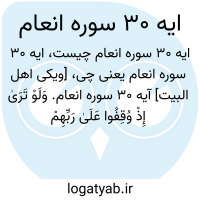 [ویکی اهل البیت] آیه 30 سوره انعام. وَلَوْ تَرَیٰ إِذْ وُقِفُوا عَلَیٰ رَبِّهِمْ ۚ قَالَ أَلَیْسَ هَٰذَا بِالْحَقِّ ۚ قَالُوا بَلَیٰ وَرَبِّنَا ۚ قَالَ فَذُوقُوا الْعَذَابَ بِمَا کُنْتُمْ تَکْفُرُونَ
