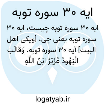[ویکی اهل البیت] آیه 30 سوره توبه. وَقَالَتِ الْیَهُودُ عُزَیْرٌ ابْنُ اللَّهِ وَقَالَتِ النَّصَارَی الْمَسِیحُ ابْنُ اللَّهِ ۖ ذَٰلِکَ قَوْلُهُمْ بِأَفْوَاهِهِمْ ۖ یُضَاهِئُونَ قَوْلَ الَّذِینَ کَفَرُوا مِنْ قَبْلُ ۚ قَاتَلَهُمُ اللَّهُ ۚ أَنَّیٰ یُؤْفَکُونَ