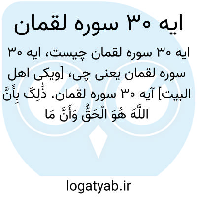 [ویکی اهل البیت] آیه 30 سوره لقمان. ذَٰلِکَ بِأَنَّ اللَّهَ هُوَ الْحَقُّ وَأَنَّ مَا یَدْعُونَ مِنْ دُونِهِ الْبَاطِلُ وَأَنَّ اللَّهَ هُوَ الْعَلِیُّ الْکَبِیرُ