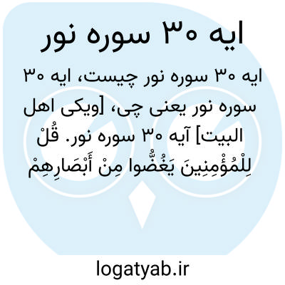 [ویکی اهل البیت] آیه 30 سوره نور. قُلْ لِلْمُؤْمِنِینَ یَغُضُّوا مِنْ أَبْصَارِهِمْ وَیَحْفَظُوا فُرُوجَهُمْ ۚ ذَٰلِکَ أَزْکَیٰ لَهُمْ ۗ إِنَّ اللَّهَ خَبِیرٌ بِمَا یَصْنَعُونَ