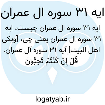 [ویکی اهل البیت] آیه 31 سوره آل عمران. قُلْ إِنْ کُنْتُمْ تُحِبُّونَ اللَّهَ فَاتَّبِعُونِی یُحْبِبْکُمُ اللَّهُ وَیَغْفِرْ لَکُمْ ذُنُوبَکُمْ ۗ وَاللَّهُ غَفُورٌ رَحِیمٌ