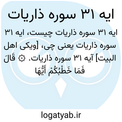 [ویکی اهل البیت] آیه 31 سوره ذاریات. ۞ قَالَ فَمَا خَطْبُکُمْ أَیُّهَا الْمُرْسَلُونَ