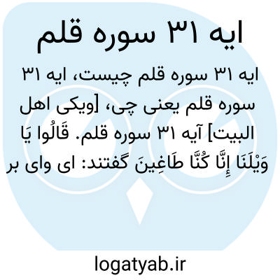 [ویکی اهل البیت] آیه 31 سوره قلم. قَالُوا یَا وَیْلَنَا إِنَّا کُنَّا طَاغِینَ