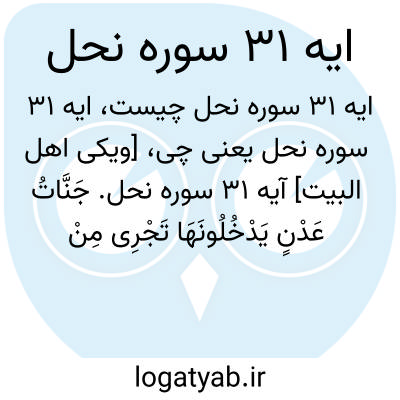 [ویکی اهل البیت] آیه 31 سوره نحل. جَنَّاتُ عَدْنٍ یَدْخُلُونَهَا تَجْرِی مِنْ تَحْتِهَا الْأَنْهَارُ ۖ لَهُمْ فِیهَا مَا یَشَاءُونَ ۚ کَذَٰلِکَ یَجْزِی اللَّهُ الْمُتَّقِینَ