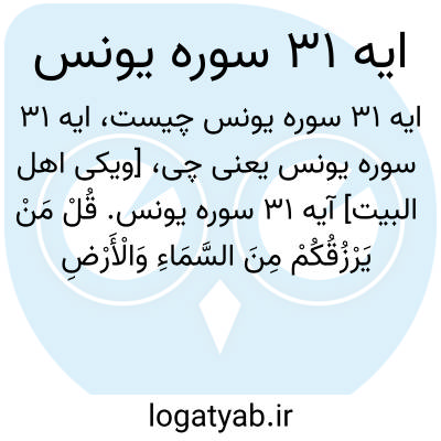 مشرکان را بگو: کیست که از آسمان و زمین به شما روزی می دهد؟ یا کیست که گوش و چشمها عطا می کند؟ و کیست که از مرده زنده و از زنده مرده برمی انگیزد؟ و کیست که فرمانش عالم آفرینش را منظم می دارد؟ پس خواهند گفت: خدای یکتاست. به آنها بگو: پس چرا خدا ترس نمی شوید؟