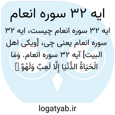 [ویکی اهل البیت] آیه 32 سوره انعام. وَمَا الْحَیَاةُ الدُّنْیَا إِلَّا لَعِبٌ وَلَهْوٌ ۖ وَلَلدَّارُ الْآخِرَةُ خَیْرٌ لِلَّذِینَ یَتَّقُونَ ۗ أَفَلَا تَعْقِلُونَ
