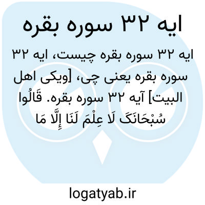 [ویکی اهل البیت] آیه 32 سوره بقره. قَالُوا سُبْحَانَکَ لَا عِلْمَ لَنَا إِلَّا مَا عَلَّمْتَنَا ۖ إِنَّکَ أَنْتَ الْعَلِیمُ الْحَکِیمُ