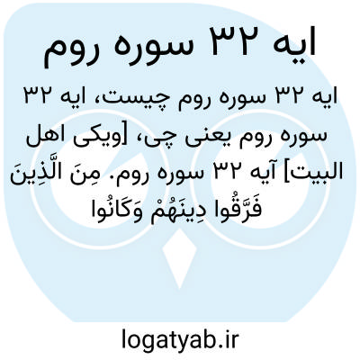 [ویکی اهل البیت] آیه 32 سوره روم. مِنَ الَّذِینَ فَرَّقُوا دِینَهُمْ وَکَانُوا شِیَعًا ۖ کُلُّ حِزْبٍ بِمَا لَدَیْهِمْ فَرِحُونَ