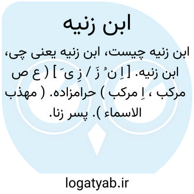 لغت نامه دهخدا ابن زنیه. [ اِ ن ُ زَ / زِ ی َ ] ( ع ص مرکب، اِ مرکب ) حرامزاده. ( مهذب الاسماء ). پسر زنا. خلاف ابن رشده.