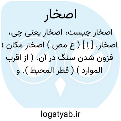 لغت نامه دهخدا اصخار. [ اِ ] ( ع مص ) اصخار مکان؛ فزون شدن سنگ در آن. ( از اقرب الموارد ) ( قطر المحیط ). و مکان را مُصْخِر گویند. ( از اقرب الموارد ). || در جای سنگناک درآمدن. ( منتهی الارب ).
