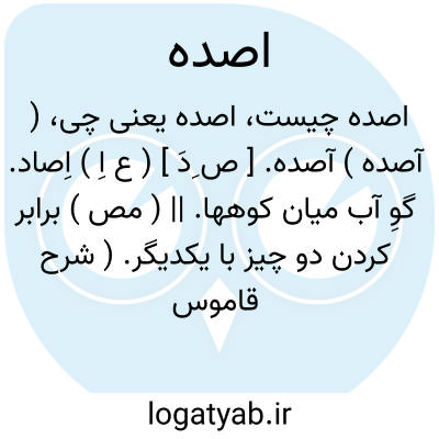 ( آصده ) آصده. [ ص ِدَ ] ( ع اِ ) اِصاد. گوِ آب میان کوهها. || ( مص ) برابر کردن دو چیز با یکدیگر. ( شرح قاموس ).