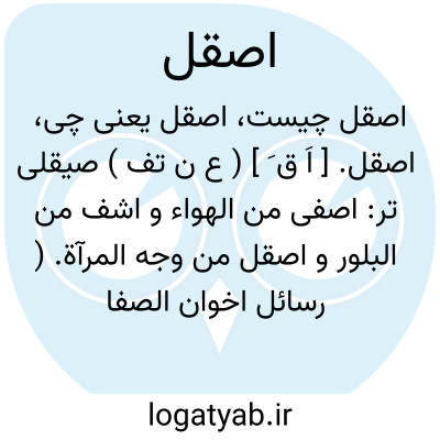 لغت نامه دهخدا اصقل. [ اَ ق َ ] ( ع ن تف ) صیقلی تر: اصفی من الهواء و اشف من البلور و اصقل من وجه المرآة. ( رسائل اخوان الصفا ).