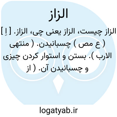 لغت نامه دهخدا الزاز. [ اِ ] ( ع مص ) چسبانیدن. ( منتهی الارب ). بستن و استوار کردن چیزی و چسبانیدن آن. ( از اقرب الموارد ).