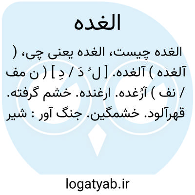 ( آلغده ) آلغده. [ ل ُ دَ / دِ ] ( ن مف / نف ) آرُغده. ارغنده. خشم گرفته. قهرآلود. خشمگین. جنگ آور: