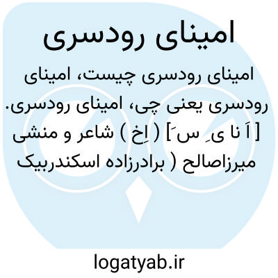 امینای رودسری. [ اَ نا ی ِ س َ] ( اِخ ) شاعر و منشی میرزاصالح ( برادرزاده اسکندربیک منشی ). وزیر لاهیجان بود. صاحب تذکره نصرآبادی نویسد: غزل ردیف افتادگی که باسم امینای دقاق یزدی بزبانها افتاده از امینای رودسری است، از آن غزل است: