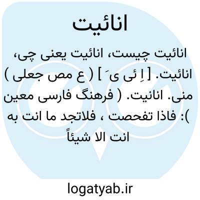 انائیت. [ اِ ئی ی َ ] ( ع مص جعلی ) منی. انانیت. ( فرهنگ فارسی معین ): فاذا تفحصت، فلاتجد ما انت به انت الا شیئاً مدرکاً لذاته و هو انائیتک، و فیه شارکک کل من ادرک ذاته و أنائیته. ( حکمةالاشراق ص 112 ). اذا تبین ان انائیتک نور مجرد و مدرک لنفسه... فیجب ان یکون الکل مدرکاً لذاته. ( حکمةالاشراق ص 120 ). و رجوع به همین کتاب ص 11 و 201 و 211 و 218 و انانیت شود.