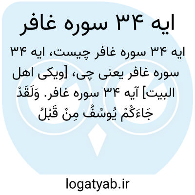 [ویکی اهل البیت] آیه 34 سوره غافر. وَلَقَدْ جَاءَکُمْ یُوسُفُ مِنْ قَبْلُ بِالْبَیِّنَاتِ فَمَا زِلْتُمْ فِی شَکٍّ مِمَّا جَاءَکُمْ بِهِ ۖ حَتَّیٰ إِذَا هَلَکَ قُلْتُمْ لَنْ یَبْعَثَ اللَّهُ مِنْ بَعْدِهِ رَسُولًا ۚ کَذَٰلِکَ یُضِلُّ اللَّهُ مَنْ هُوَ مُسْرِفٌ مُرْتَابٌ