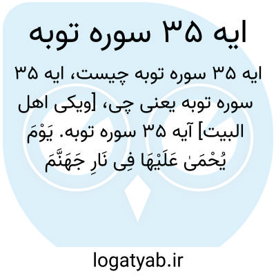 [ویکی اهل البیت] آیه 35 سوره توبه. یَوْمَ یُحْمَیٰ عَلَیْهَا فِی نَارِ جَهَنَّمَ فَتُکْوَیٰ بِهَا جِبَاهُهُمْ وَجُنُوبُهُمْ وَظُهُورُهُمْ ۖ هَٰذَا مَا کَنَزْتُمْ لِأَنْفُسِکُمْ فَذُوقُوا مَا کُنْتُمْ تَکْنِزُونَ