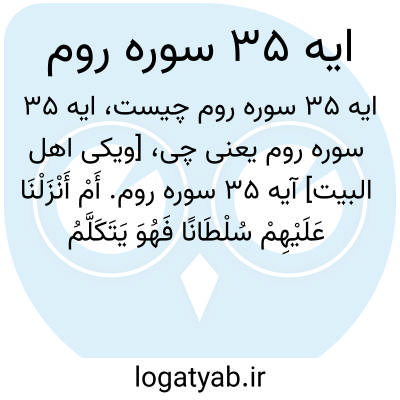 [ویکی اهل البیت] آیه 35 سوره روم. أَمْ أَنْزَلْنَا عَلَیْهِمْ سُلْطَانًا فَهُوَ یَتَکَلَّمُ بِمَا کَانُوا بِهِ یُشْرِکُونَ