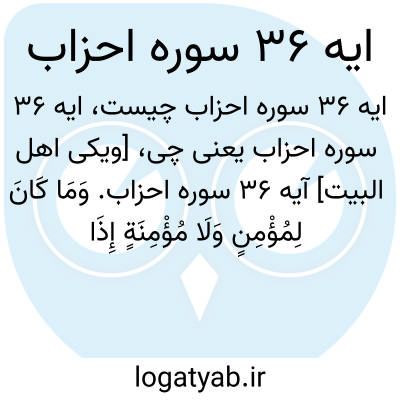 [ویکی اهل البیت] آیه 36 سوره احزاب. وَمَا کَانَ لِمُؤْمِنٍ وَلَا مُؤْمِنَةٍ إِذَا قَضَی اللَّهُ وَرَسُولُهُ أَمْرًا أَنْ یَکُونَ لَهُمُ الْخِیَرَةُ مِنْ أَمْرِهِمْ ۗ وَمَنْ یَعْصِ اللَّهَ وَرَسُولَهُ فَقَدْ ضَلَّ ضَلَالًا مُبِینًا