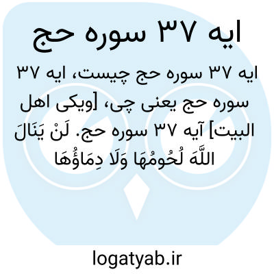 [ویکی اهل البیت] آیه 37 سوره حج. لَنْ یَنَالَ اللَّهَ لُحُومُهَا وَلَا دِمَاؤُهَا وَلَٰکِنْ یَنَالُهُ التَّقْوَیٰ مِنْکُمْ ۚ کَذَٰلِکَ سَخَّرَهَا لَکُمْ لِتُکَبِّرُوا اللَّهَ عَلَیٰ مَا هَدَاکُمْ ۗ وَبَشِّرِ الْمُحْسِنِینَ