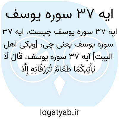 [ویکی اهل البیت] آیه 37 سوره یوسف. قَالَ لَا یَأْتِیکُمَا طَعَامٌ تُرْزَقَانِهِ إِلَّا نَبَّأْتُکُمَا بِتَأْوِیلِهِ قَبْلَ أَنْ یَأْتِیَکُمَا ۚ ذَٰلِکُمَا مِمَّا عَلَّمَنِی رَبِّی ۚ إِنِّی تَرَکْتُ مِلَّةَ قَوْمٍ لَا یُؤْمِنُونَ بِاللَّهِ وَهُمْ بِالْآخِرَةِ هُمْ کَافِرُونَ