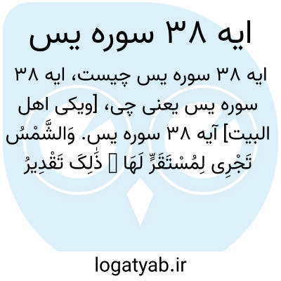 [ویکی اهل البیت] آیه 38 سوره یس. وَالشَّمْسُ تَجْرِی لِمُسْتَقَرٍّ لَهَا ۚ ذَٰلِکَ تَقْدِیرُ الْعَزِیزِ الْعَلِیمِ