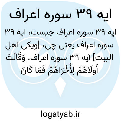 [ویکی اهل البیت] آیه 39 سوره اعراف. وَقَالَتْ أُولَاهُمْ لِأُخْرَاهُمْ فَمَا کَانَ لَکُمْ عَلَیْنَا مِنْ فَضْلٍ فَذُوقُوا الْعَذَابَ بِمَا کُنْتُمْ تَکْسِبُونَ