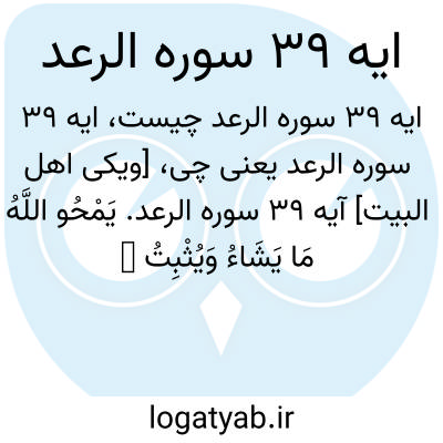 [ویکی اهل البیت] آیه 39 سوره الرعد. یَمْحُو اللَّهُ مَا یَشَاءُ وَیُثْبِتُ ۖ وَعِنْدَهُ أُمُّ الْکِتَابِ